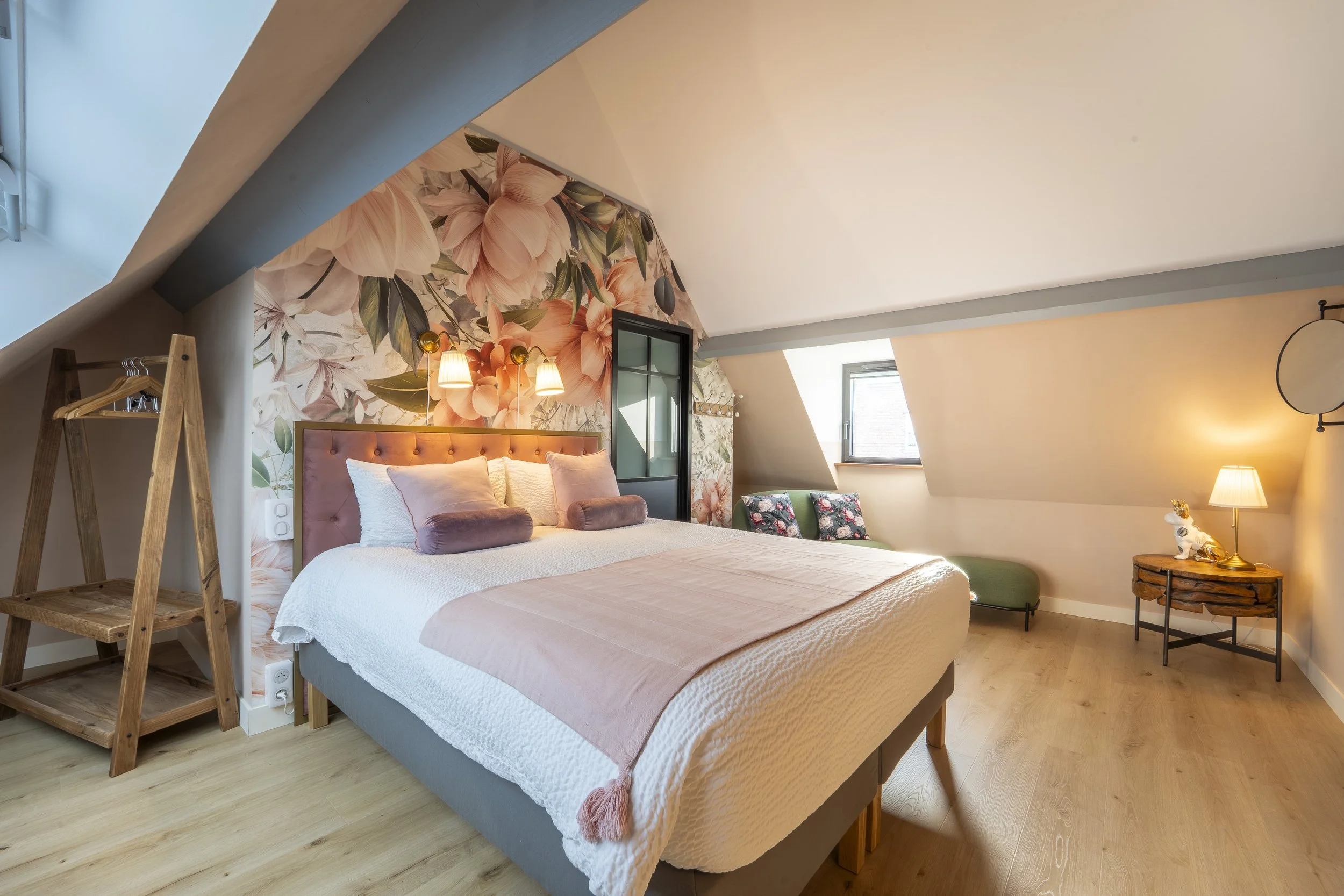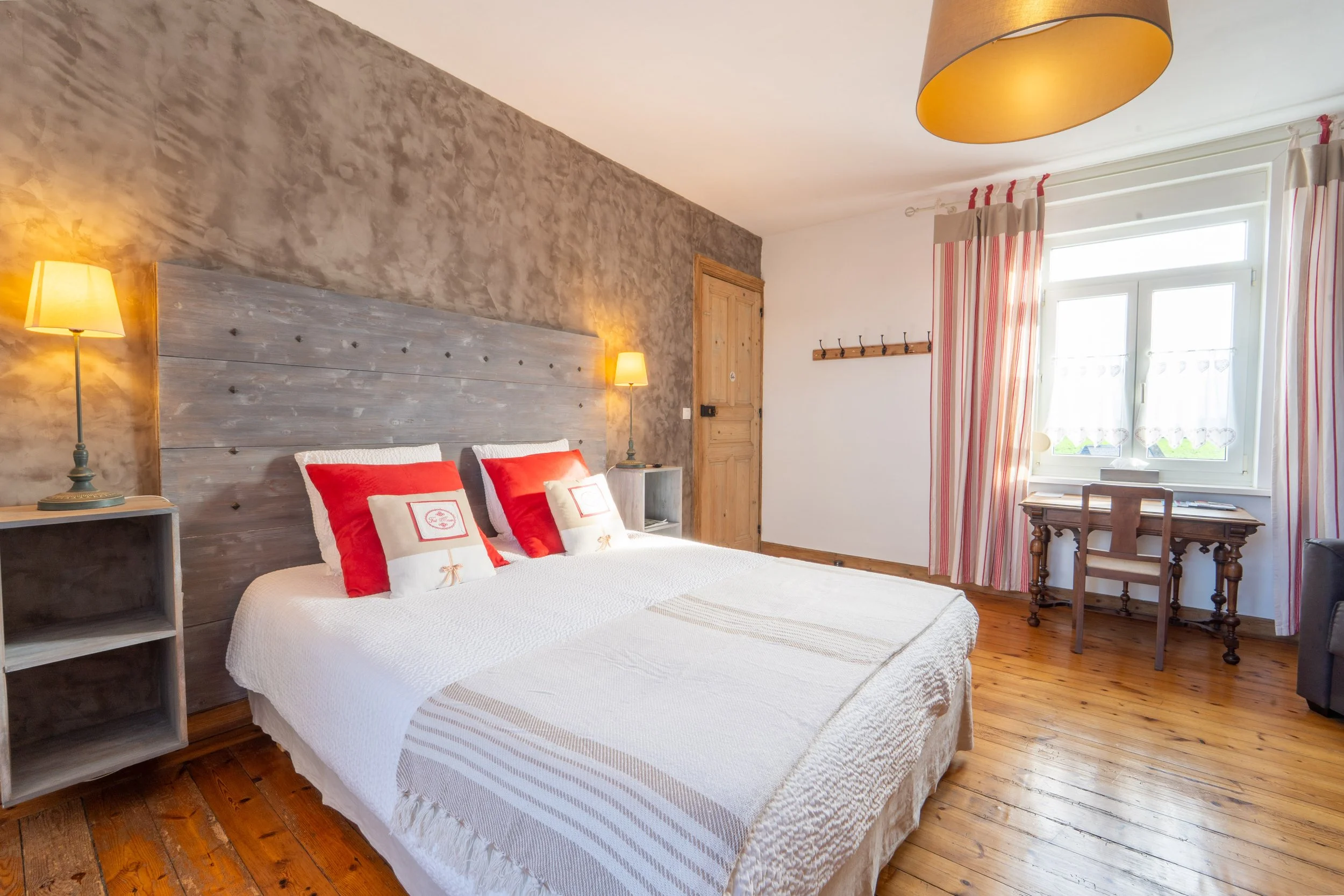 Une chambre au style Campagne Chic, pensée comme un cocon chaleureux où se mêlent douceur, élégance et esprit de la campagne.