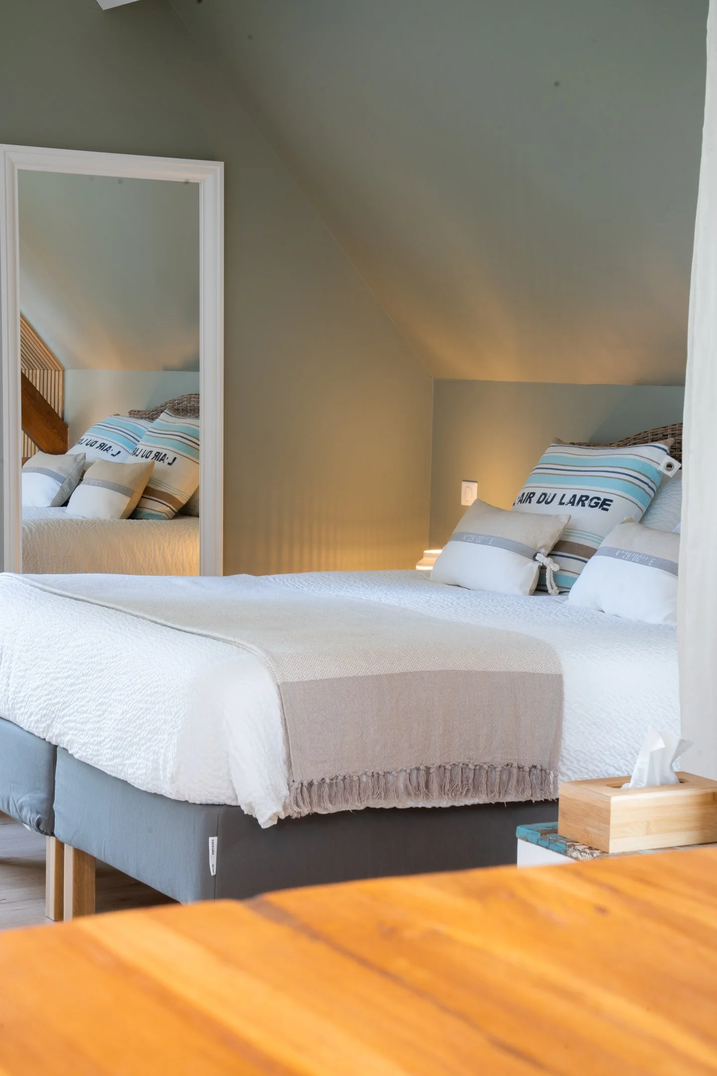 Une suite studio à l’esprit Plage du Nord, douce et lumineuse, ouverte sur la campagne pour une escapade paisible.